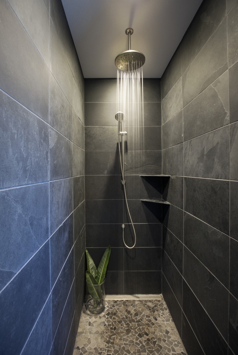 Designed with privacy and relaxation in mind, the sleeping areas are strategically tucked away from the living areas, with each bedroom having its full-size ensuite bathroom with calming, cavernous-inspired showers for a grotto-like, beach feel.