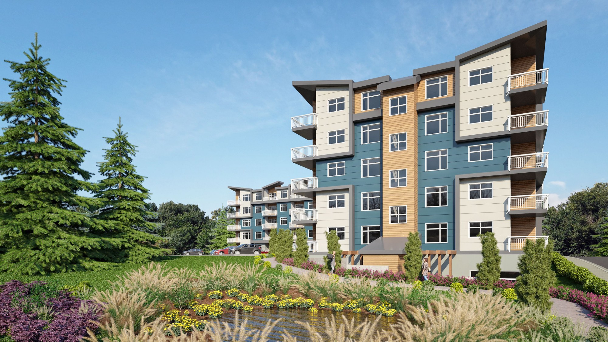 Located in Holland Creek in the Town of Ladysmith, Tidalwood is a four-storey multi-family condo that’s now renting and welcoming residents as of May 2022. As the general contractor, we ensured the building design featured a range of amenities including on-site parking, heated bike storage, e-bike chargers, storage lockers, in-suite laundry, and several energy-efficient components. Residents also have access to an on-site fitness room and outdoor covered social area. Our team worked with the natural landscape to give residents access to miles of walking trails that lead to surrounding lakes.